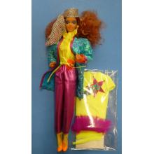 Barbie and the Rockers 1st edition w/ concert tour tee shirt ~repainted skirt and boot tops ~variation belt (purple vinyl) and boots tops (no silver spots) ~replaced missing shoes with 90s pumps ~no microphone