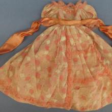 DC92 Pink Gown About 19" Bodice top to hem of netting Pink Gown with design on underskirt Over skirt of netting Missing one strap Status: AvailableCondition: OtherPrice: $40.00