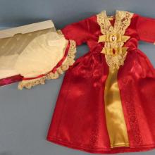 ++FM299 American Girl Felicity's Christmas Gown 1991-2010 Pleasant Company Gown, petticoat, both lace and ribbon stomachers, and choker Status: AvailablePrice: $70.00