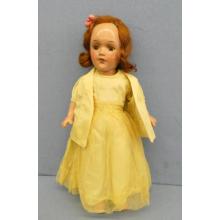 -17" Composition Arranbee Doll Cloth body Has some crazing Dress needs repair Mohair wig, missing lashes on one eye Status: AvailablePrice: $30.00