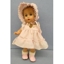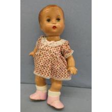 ** Effanbee 10" Patyette Redressed with vintage dress and onesy Rub on right leg and back of head Status: AvailablePrice: $60.00