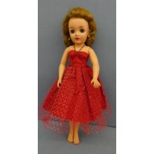 **MFD17 Vintage Red Strapless Gown Dress Only Doll is Not Included Rhinestone halter strap is difficult to attach Buttons Shown on 18" Revlon Status: AvailablePrice: $15.00