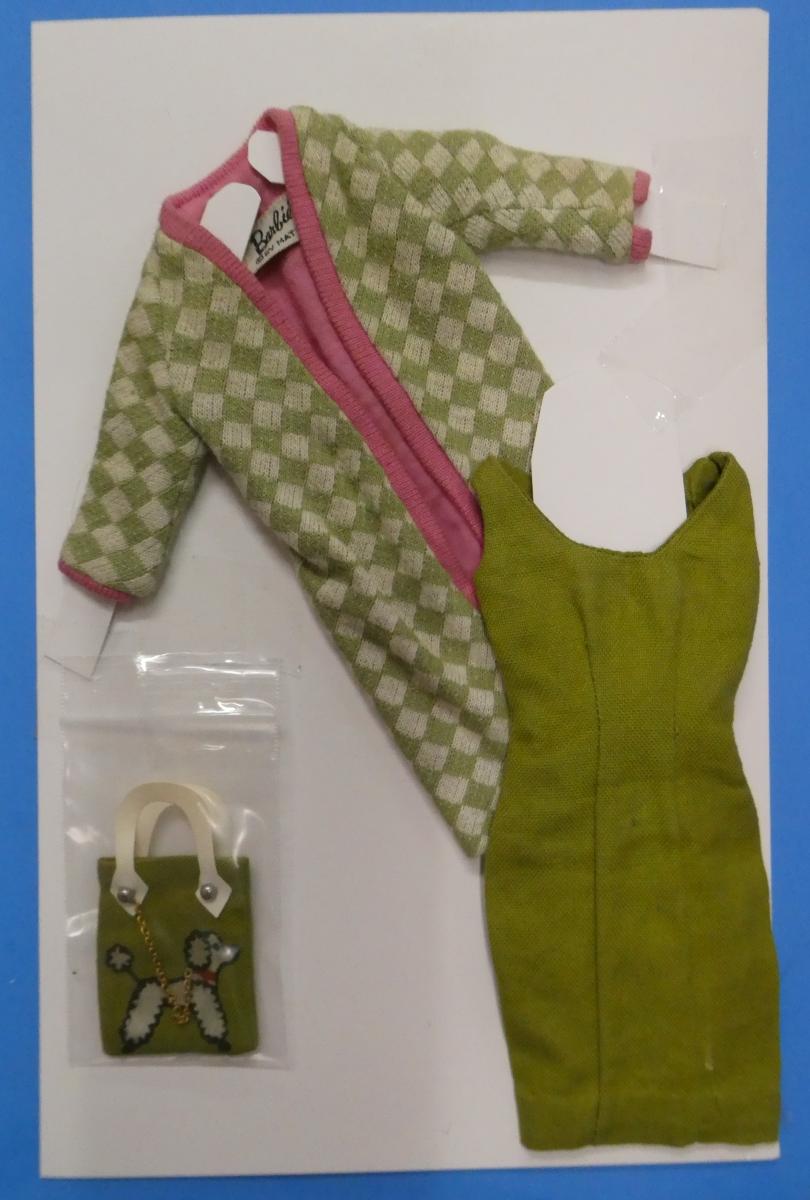 VBF0136 Poodle Parade Barbie Poodle Parade 1643 1965 Coat, dress, purse only (coat has some discoloration from age) Year: 1965Price: $95.00Status: Available Additional Images
