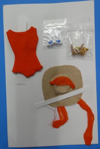 VBF0155 In the Swim (orange) Barbie In the Swim Fashion PAK 1964-65 Generally beautiful condition (though edges of hat are a tiny bit frayed) Complete! Price: $175.00Status: Available