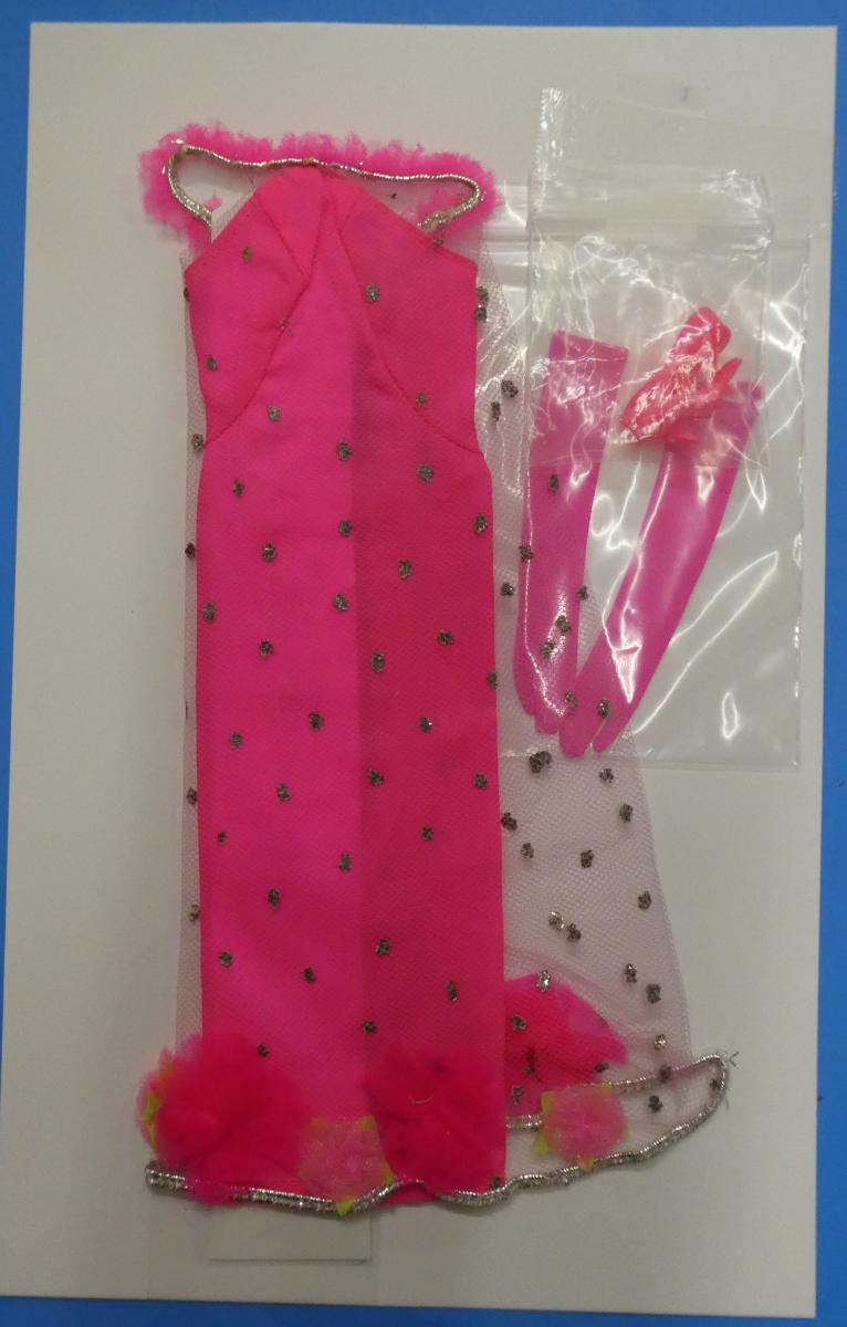 VBF2001 Extravaganza Barbie Extravaganza 1844 ~missing silver dimple purse Generally great condition (tear at top hem of one glove) (missing two flowers at hem) Year: 1968Price: $120.00Status: Available Additional Images