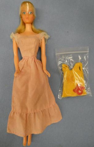 VB216 1974 Sweet 16 Barbie Sweet 16 Barbie Pretty face Reset hairstyle ~Dress (faded and played with) and top (played with) ~knees click (right shoulder frozen) Price: $45.00Status: Available Additional Images