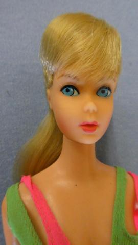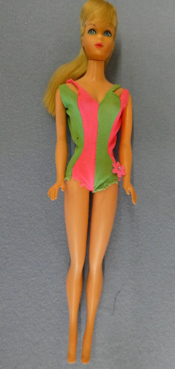 VB226 1970 Standard Barbie blonde Standard Barbie stock number 1190 ~blonde hair color ~1970 version ~reset hair ~pretty face ~good swimsuit,(needs minor repair at back seam, spot on left side) Year: 1970Price: $250.00Status: Available Additional Images