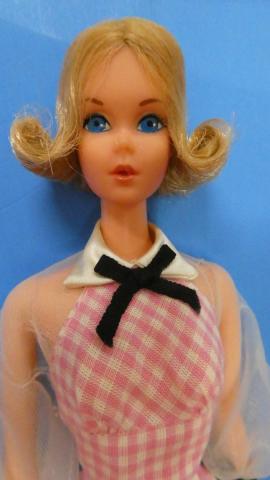 VB272 1973 Quick Curl Barbie Quick Curl Barbie Reset hair ~beautiful dress ~no shoes or hair accessories ~knees click and hold beautifully ~hips and arms frozen (common) Price: $45.00Status: Available Additional Images