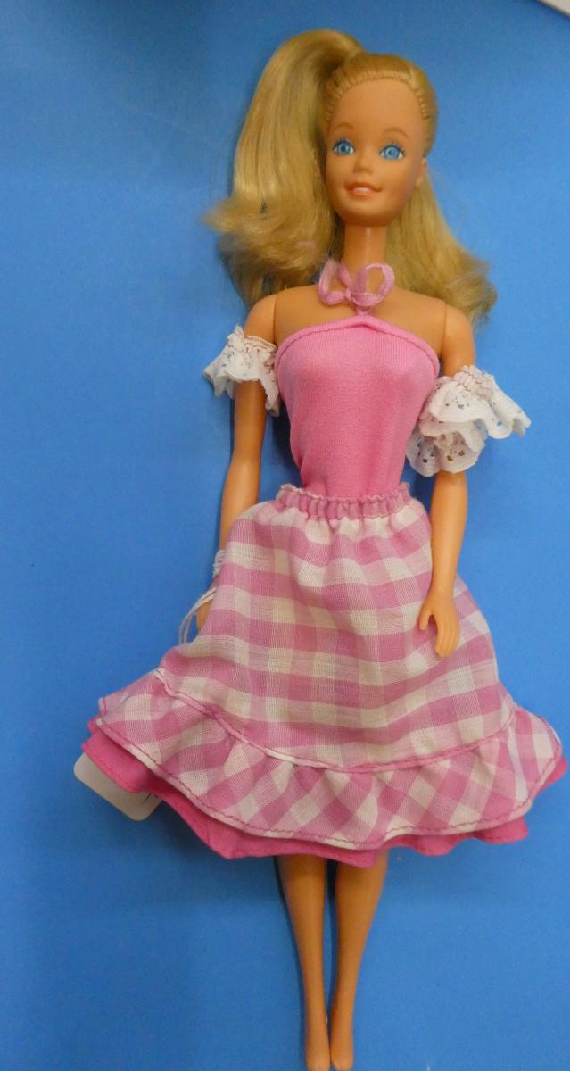 VB357 1982 My First Barbie My First Barbie ~reset hair ~includes swimsuit, skirt, armlets only (elastic stretched out) Year: 1982Price: $25.00Status: Available Additional Images