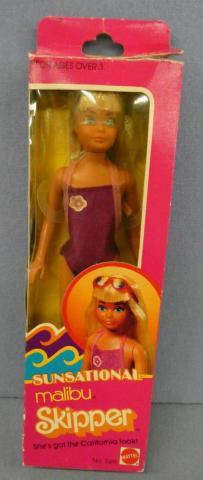 * 1981 Sunsational Malibu Skipper 1981 Sunsational Malibu Skipper 1069 (box wear/ damage from age) Year: 1981Price: $30.00Condition: Never Removed From BoxStatus: Available Additional Images