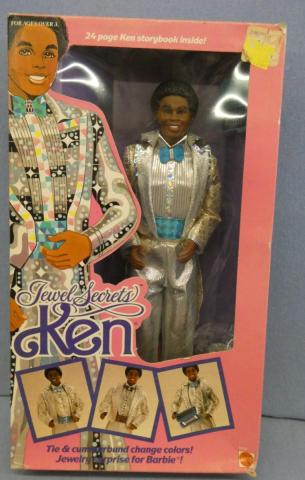 1986 Jewel Secrets Ken (#1) Jewel Secrets Ken African American 3232 (some denting to front) Year: 1986Price: $30.00Condition: Never Removed From BoxStatus: Available Additional Images