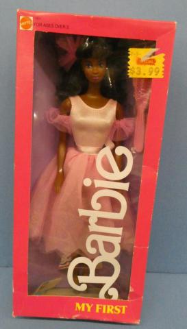 1986 My First Barbie My First Barbie African American 5942 (bottom of box damaged) Year: 1986Price: $20.00Condition: Never Removed From BoxStatus: Available Additional Images