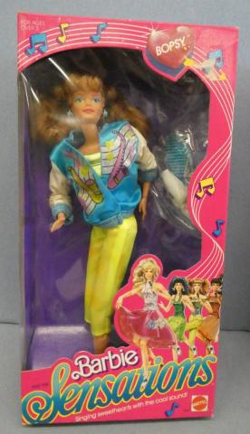 1987 Barbie and the Sensations ~ Bopsy (#2) Barbie and the Sensations Bopsy 4967 ~price sticker residue ~faint spotting to legs (very common for these dolls) Year: 1987Price: $35.00Condition: Never Removed From BoxStatus: Available Additional Images