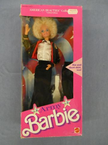 * 1989 Army Barbie (#2) American Beauties collection Army Barbie 3966 wear to box Year: 1989Price: $15.00Condition: Never Removed From BoxStatus: Available Additional Images