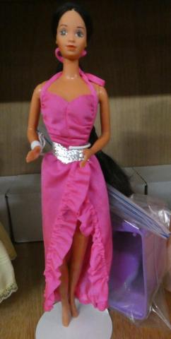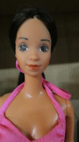 VB392 1982 Twirly Curls Barbie (Hispanic) Twirly Curls Barbie Hispanic version Doll, Swimsuit, Cover-up, shoes, twirly -curler, and seat Year: 1982Price: $50.00Status: Available Additional Images