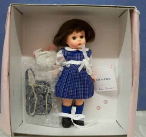 Madame Alexander 8" Off to Class #35645 Off to Class Wendy Year: 2003Price: $60.00Condition: Mint in BoxStatus: Available