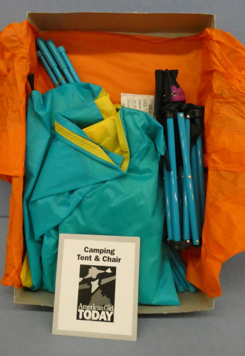 **AG1006 American Girl Today Camping Tent and Chair 2001-2003 Box has some dents Price: $30.00Condition: Never Removed From BoxStatus: Sold Additional Images