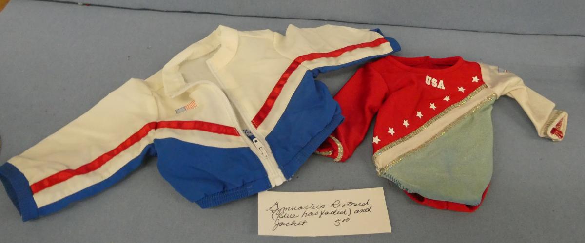 **AG190 American Girl Gymnastics Leotard and Jacket Blue has faded on leotard Price: $5.00Status: Available Additional Images