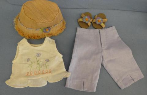 **AGT30 American Girl of Today Gardening Outfit I 2002-2004 Complete with top, pants, hat and sandals American Girl Tag Price: $30.00Status: Available Additional Images