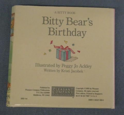 - American Girl Bitty Baby Bear's Birthday Book Has bend Price: $5.00Status: Available Additional Images