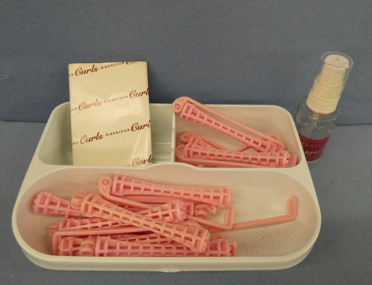 **HS05 American Girl Hair Supplies 11 Curling rods, curling papers and mister Price: $20.00Status: Available Additional Images