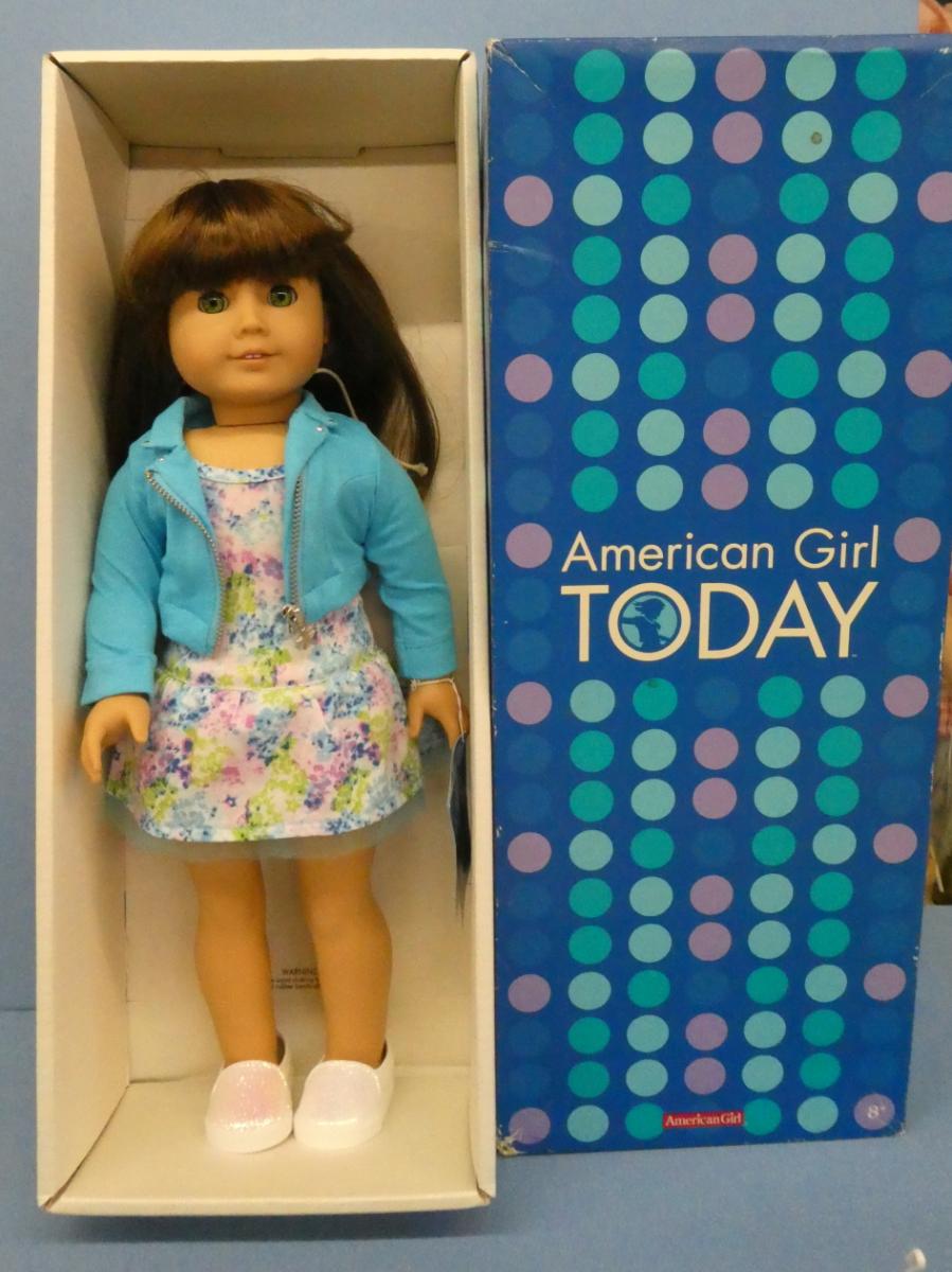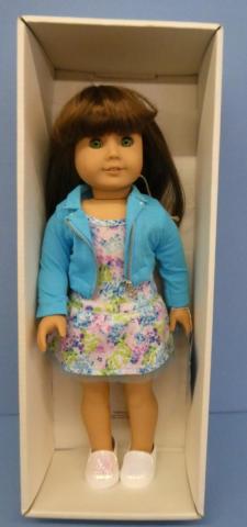 ++JLY19 American Girl Today #19 (Second Release) Pleasant Company 1999-2018 Left eye is a little lazy Dress, jacket, panties and shoes Classic mold, light skin, light brown hair and green eyes Price: $120.00Status: Available Additional Images