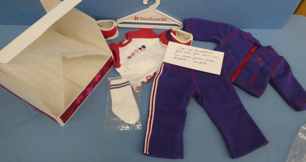 ++JLY41 American Girl Just Like You Zip-up Sweatsuit 2005-2007 DM506 Tee, pants, jacket, socks, and sneakers Complete Price: $20.00Condition: Mint in BoxStatus: Available Additional Images