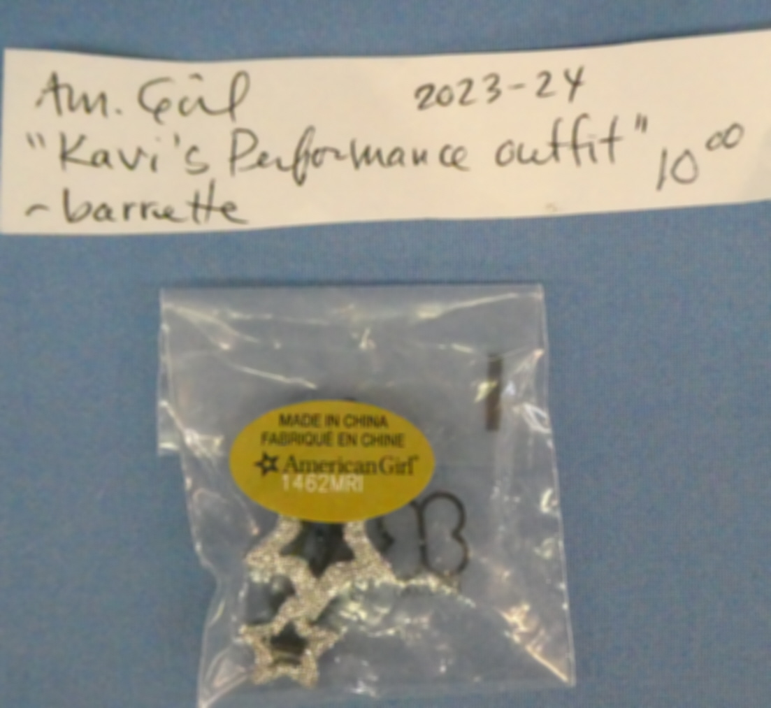 ++KS21 American Girl Kavi's Performance Outfit Barrette 2023-2024 Price: $10.00Condition: Never Removed From BoxStatus: Available Additional Images
