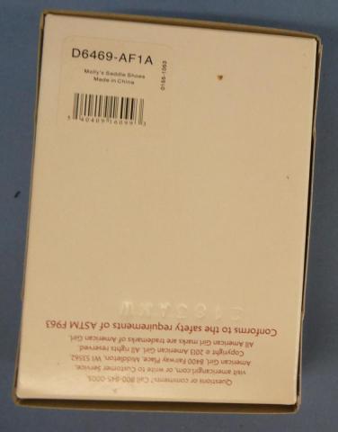 ++ MM509 American Girl Molly's Saddle Shoes American Girl Molly's Saddle Shoes D6469-AFIA Complete NRFB (only opened to photograph) Price: $20.00Condition: Never Removed From BoxStatus: Available Additional Images