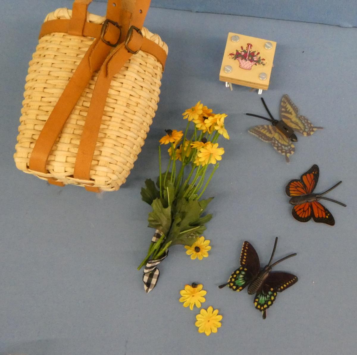 ++SP126 American Girl Samantha's Nature Paraphenalia 1987-2007 Flower Press, Basket, 3 Butterflies, black-eyed Susan Price: $75.00Status: Available Additional Images