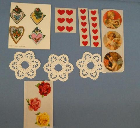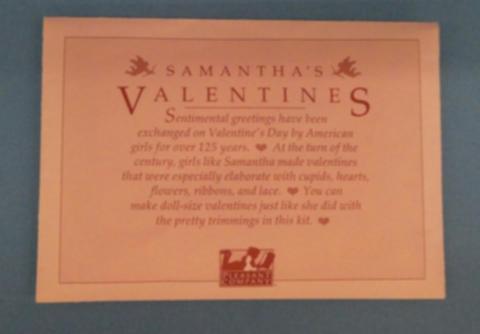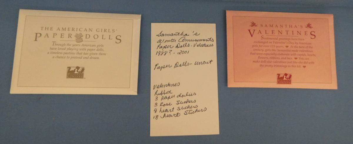 ++SP230 American Girl Samantha's Winter Amusements 1988-2001 French Paper Dolls-Uncut Valentines-Ribbon, 3 Paper Doilies, 3 Rose Stickers, 18 Heart Stickers and 3 Angel Stickers Price: $50.00Status: Available Additional Images