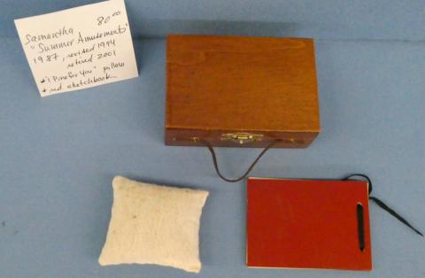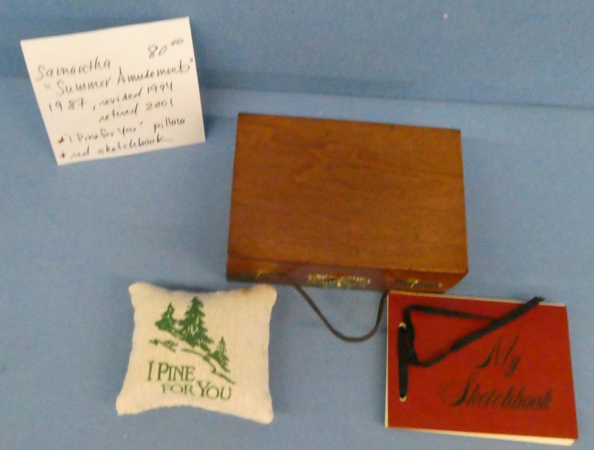 ++SP44 American Girl Samantha's Summer Amusements 1987, revised 1994, retired 2001 Paint Set, I Pine for You Pillow, and Red Sketch Book Price: $80.00Status: Available Additional Images