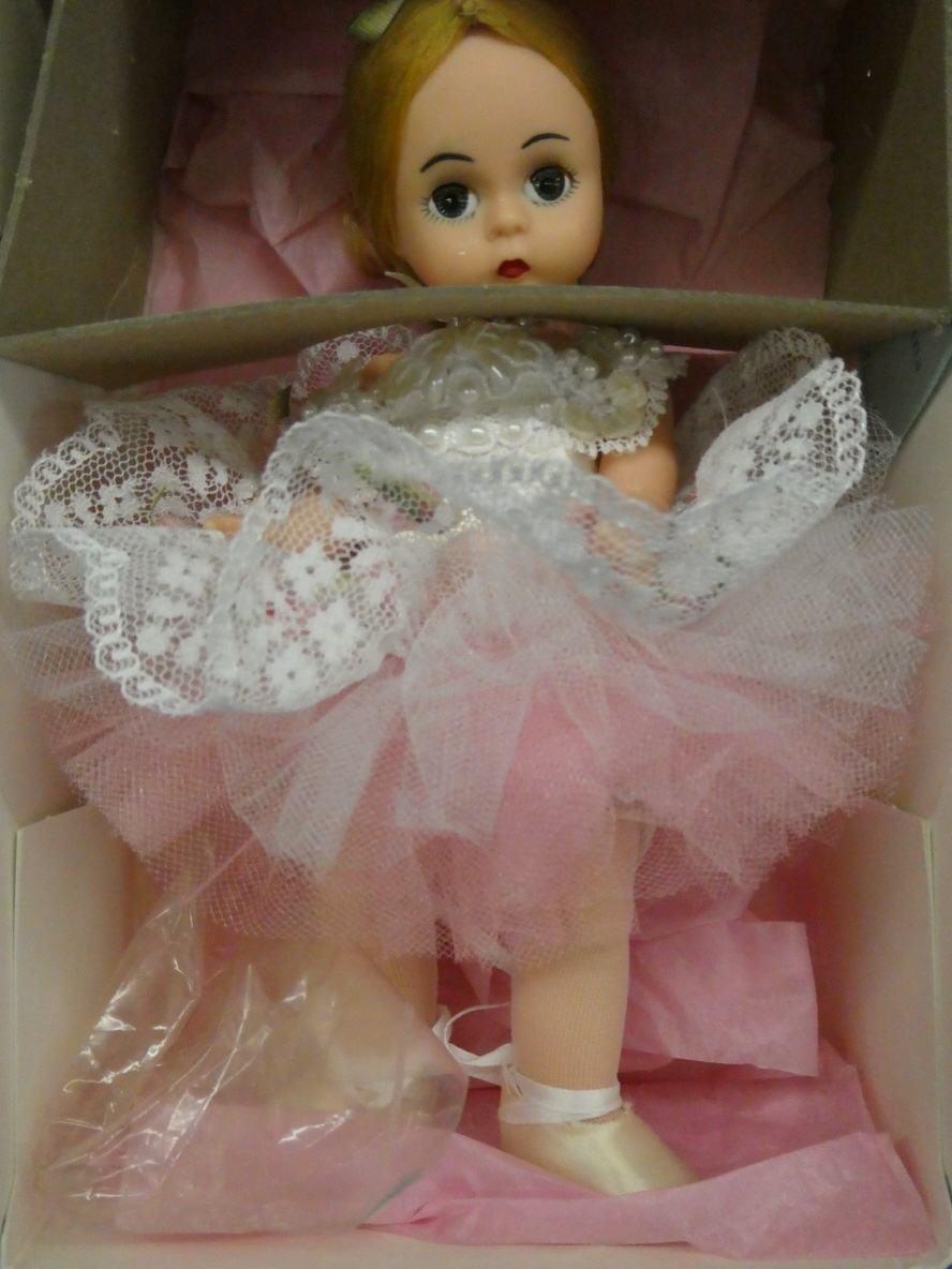 8" Ballerina #13900 Eyes stick a little Made in New York Year: 1998Price: $40.00Condition: Mint in BoxStatus: Available Additional Images