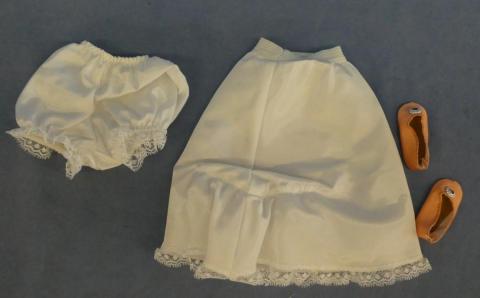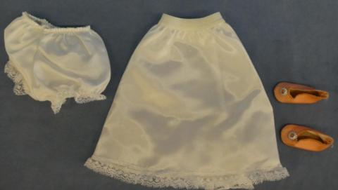 Ellen Wilson's Outfit for 14" Doll Dress, Slip, Panties and Shoes Price: $10.00Condition: Lightly Played WithStatus: Available Additional Images