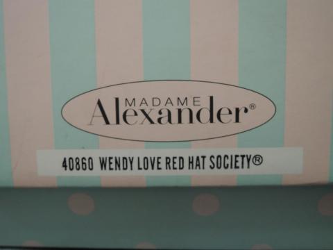 Madame Alexander Wendy Loves Red Hat Society #40860 8" Wendy Love Red Hat Society Year: 2005Price: $80.00Status: Available Additional Images