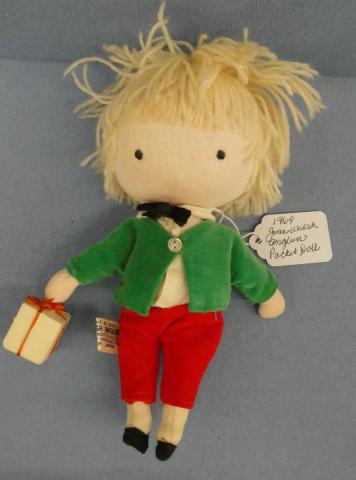 Joan Walsh Anglund Pocket Doll ~ Christmas Boy (blonde hair) Year: 1969Price: $15.00Status: Available Additional Images