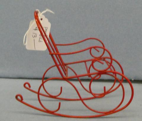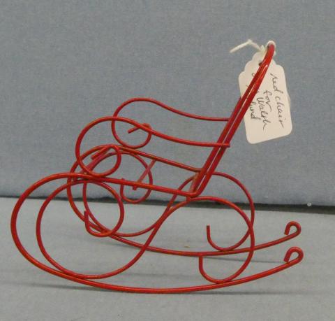 Pocket Dolls furniture-- red wire rcking chair made for the Pocket dolls Price: $13.00Status: Available Additional Images