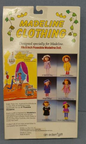 MADELINE Party Time Dress Up outfit Eden Gift Madeline Party Time Dress Up outfit 33372 Year: 1995Price: $25.00Condition: Never Removed From BoxStatus: Available Additional Images