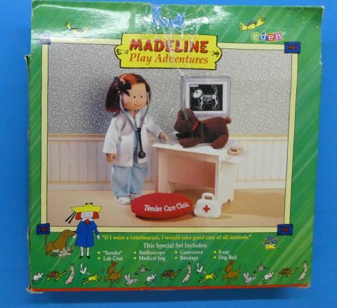 MADELINE Veterinarian Eden Toys Madeline and Friends Play Adventure Veterinarian set # 33427 (box in rough shape) Year: 2000Price: $20.00Condition: Never Removed From BoxStatus: Available Additional Images