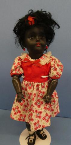 Porcelain head, open/close eyes, jointed elbows, wrists