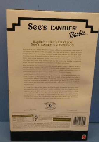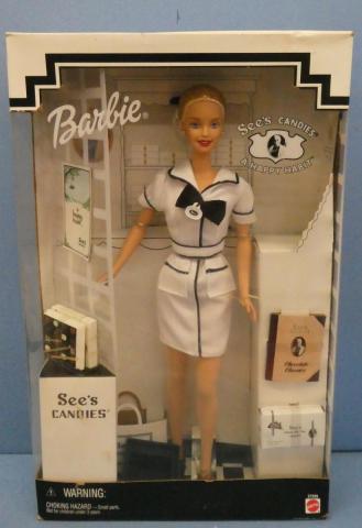 1999 See's Candy Shop girl Barbie (#2) See's Candy Barbie 27289 Year: 1999Price: $25.00Condition: Never Removed From BoxStatus: Available Additional Images