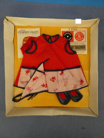 Charmin' Chatty Let's Play Together outfit Let's Play Together #299 Package has aged No Cellophane Record package has been cut, no record Year: 1962Price: $50.00Condition: Never Removed From BoxStatus: Available Additional Images