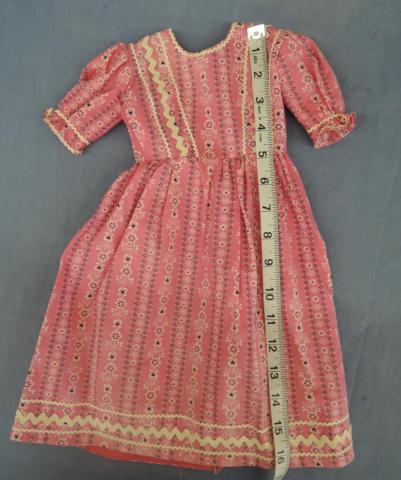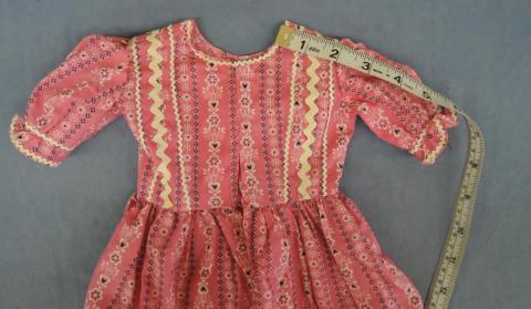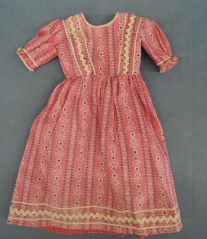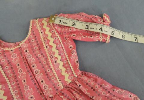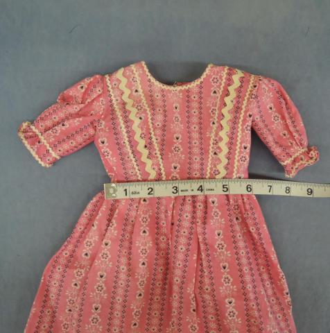 DC1073 PinK Print Dress 16" Shoulder to hem Pink Dress with ric rac for larger doll No snaps or buttons Price: $15.00Status: Available Additional Images