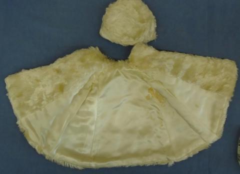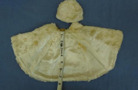 DC1828 Fur Cape and Hat 8" Neck to hem Click on picture for measurements Price: $15.00Status: Available Additional Images