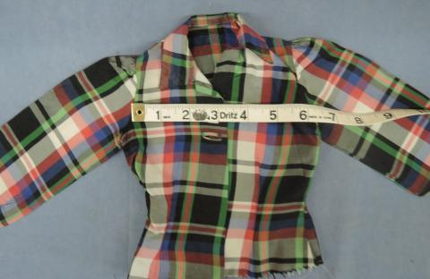 DC1843 Blouse Satiny blouse No buttons or button holes Vintage fabric Click on picture for measurements Price: $10.00Status: Available Additional Images