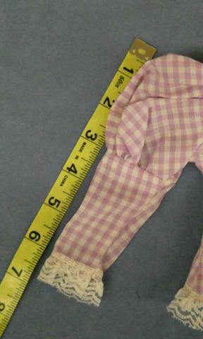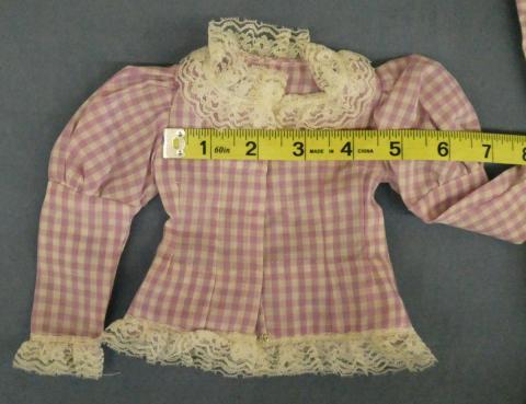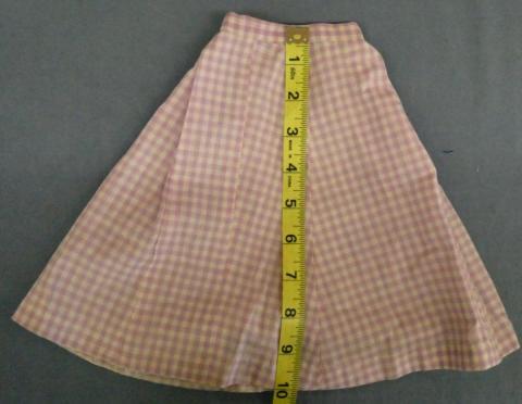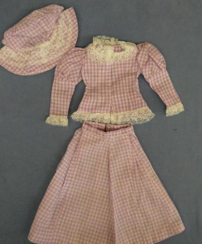 DC1921 3-Piece Outfit 10" Waist to hem0 Made for 20"-21" Doll Skirt, top and hat Metal snap enclosures Price: $20.00Condition: MintStatus: Available Additional Images