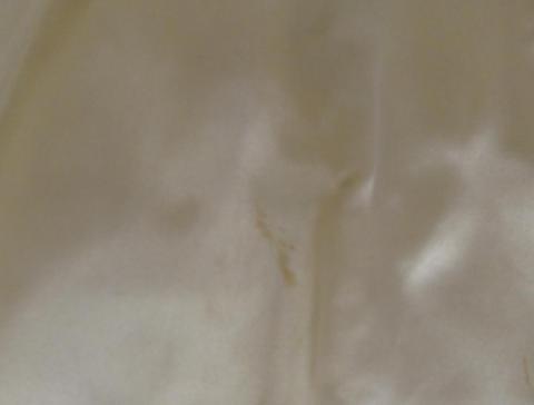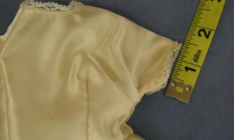 DC1988 Wedding Gown 15 1/2" Neck to hem (longest part) Ivory Wedding Gown with lace Metal snaps Small stain on front Click on picture for measurements Status: Available Additional Images