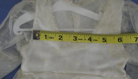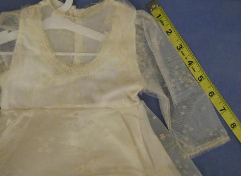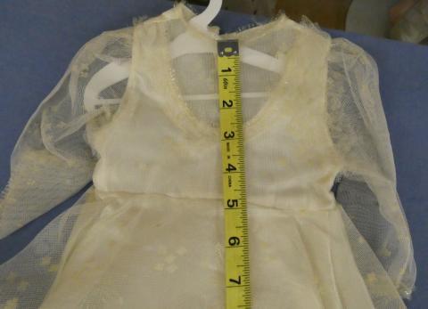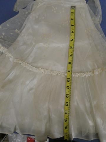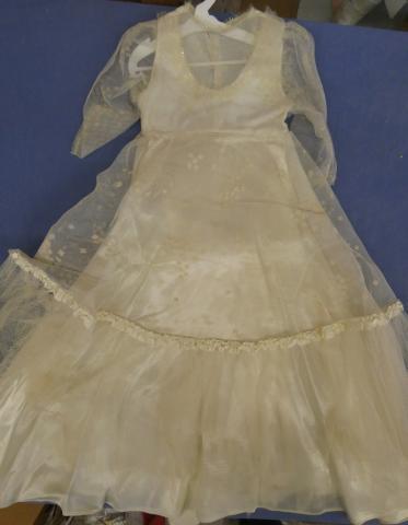 DC1990 Large Wedding Dress with Veil 22" Neck to hem (longest part) Vintage Wedding Gown with metal snaps Click on picture for measurements Price: $25.00Status: Available Additional Images