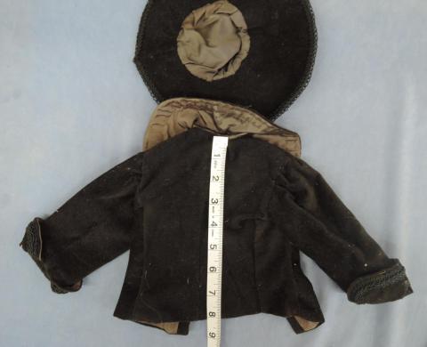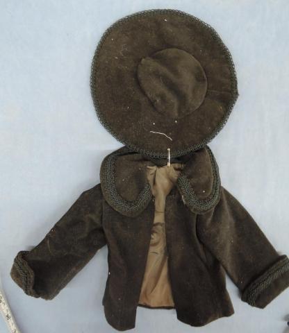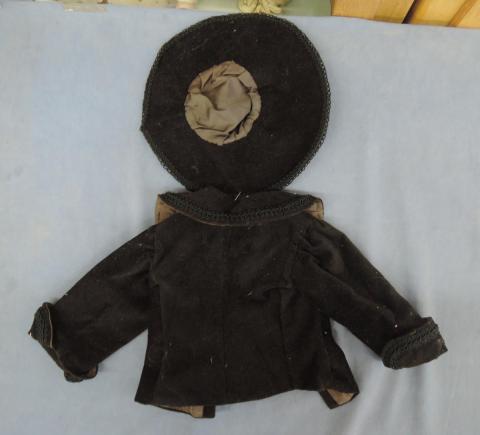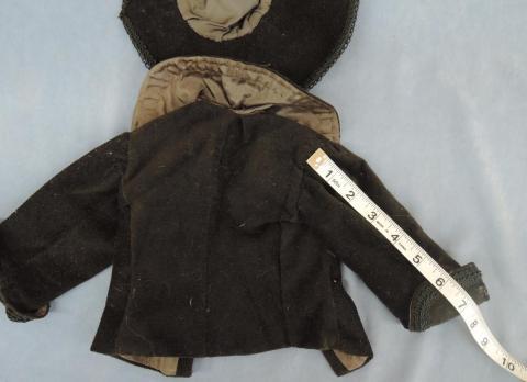 DC21 Black Jacket with Hat 8" Neck to hem Black Jackett with Hat Black is difficult to photograph Looks much better in person Vintage material Price: $25.00Status: Available Additional Images