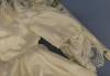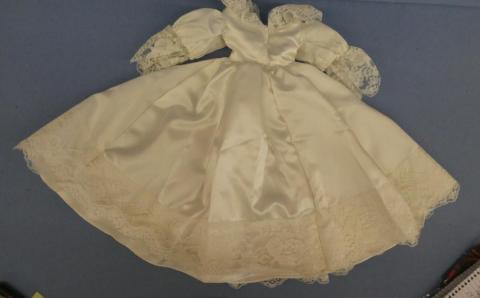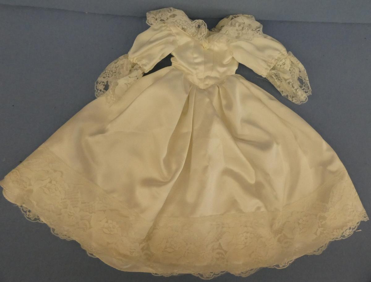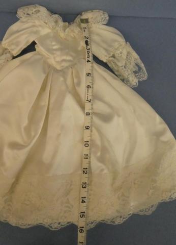 DC5032 Satiny Wedding Gown 16" Shoulder to hem Shawl-style lace collar Price: $20.00Status: Available Additional Images